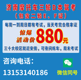 學(xué)車(chē)報(bào)名電話(huà):18678853966    業(yè)務(wù)咨詢(xún)熱線(xiàn):0531-89684386    學(xué)車(chē)咨詢(xún)QQ:263857128